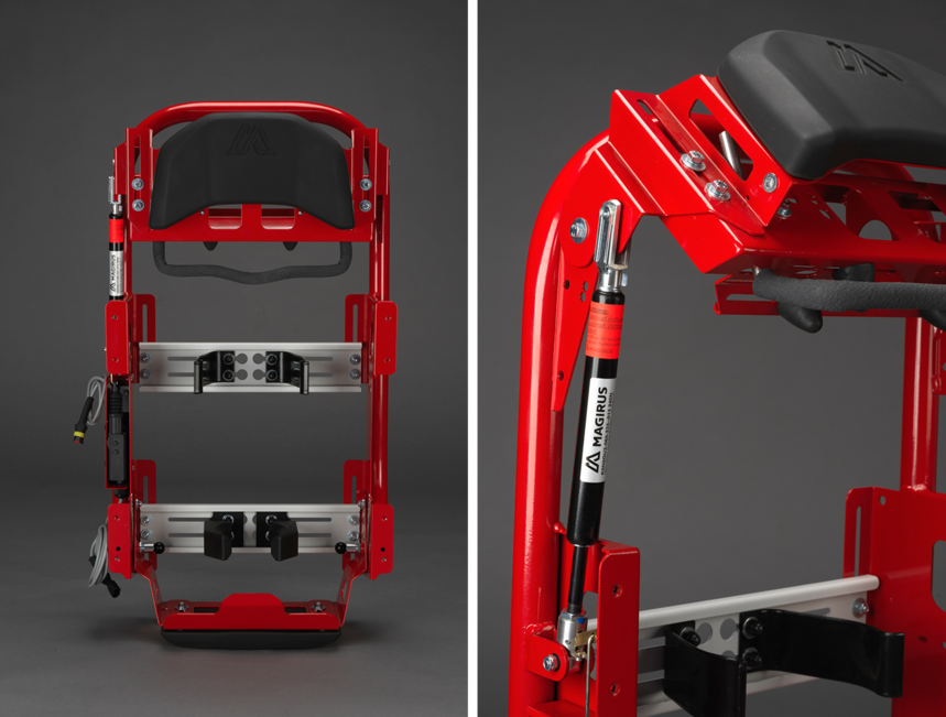 // Supporto brevettato per autorespiratori ad aria compressa a circuito aperto con molla idraulica per un'applicazione più rapida dell'apparecchio